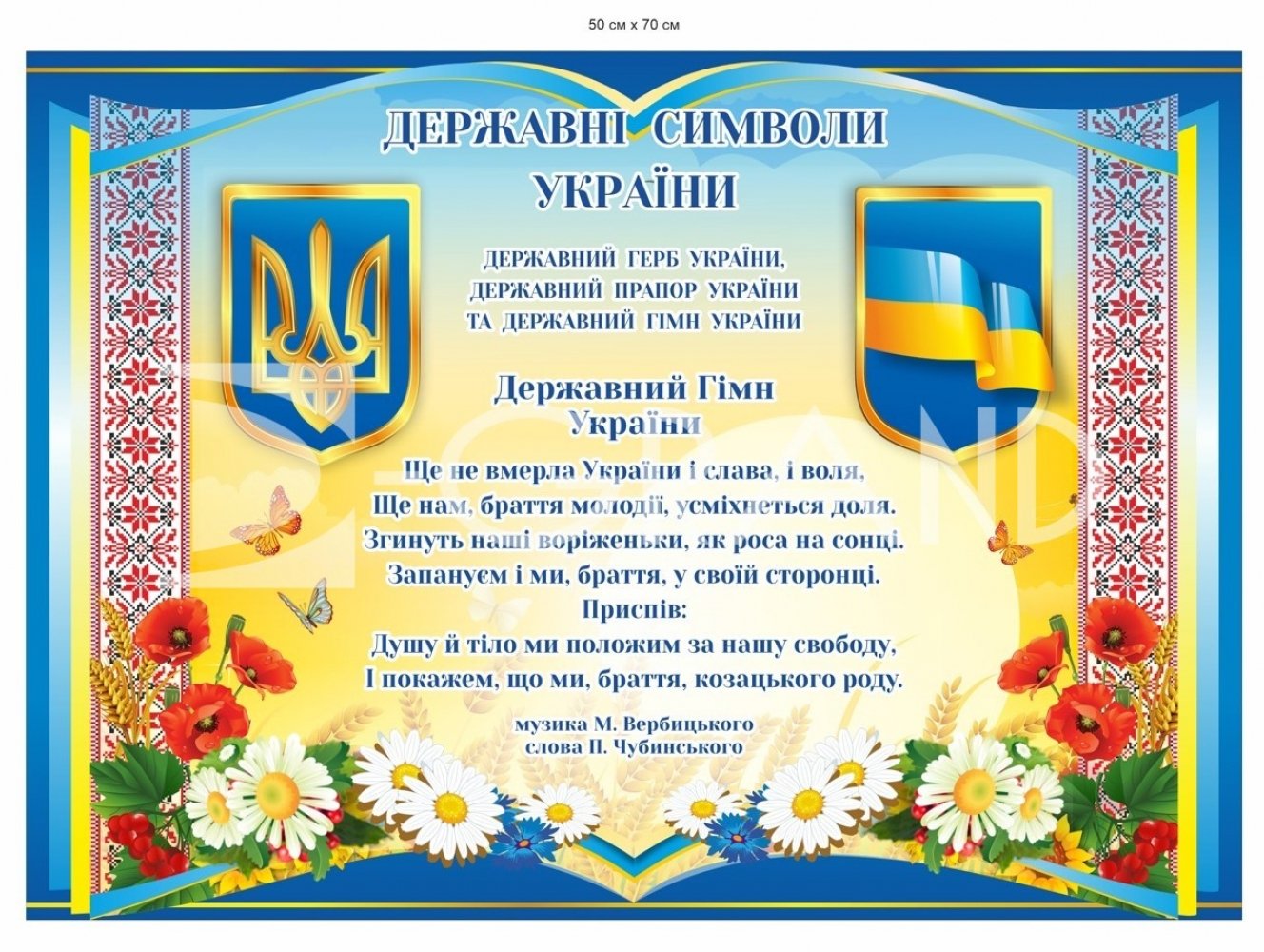 Стенд “Державні символи України” 70х50 см