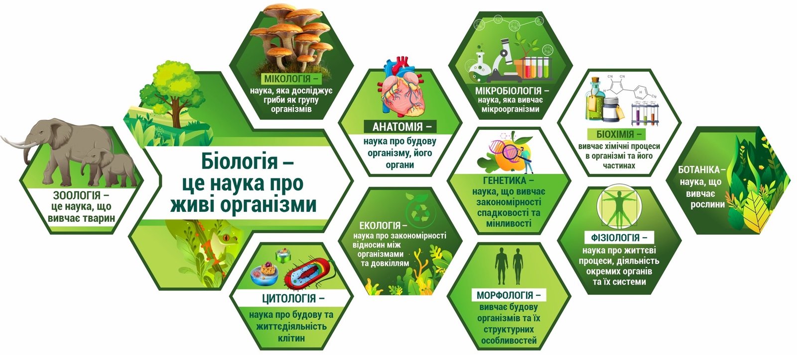 Екологія — досліджує взаємозв’язки організмів з довкіллям.