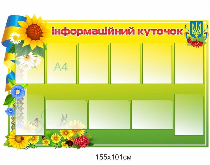 Для комплексного оформлення приміщення ЦНСП зазвичай використовують такі види стендів: