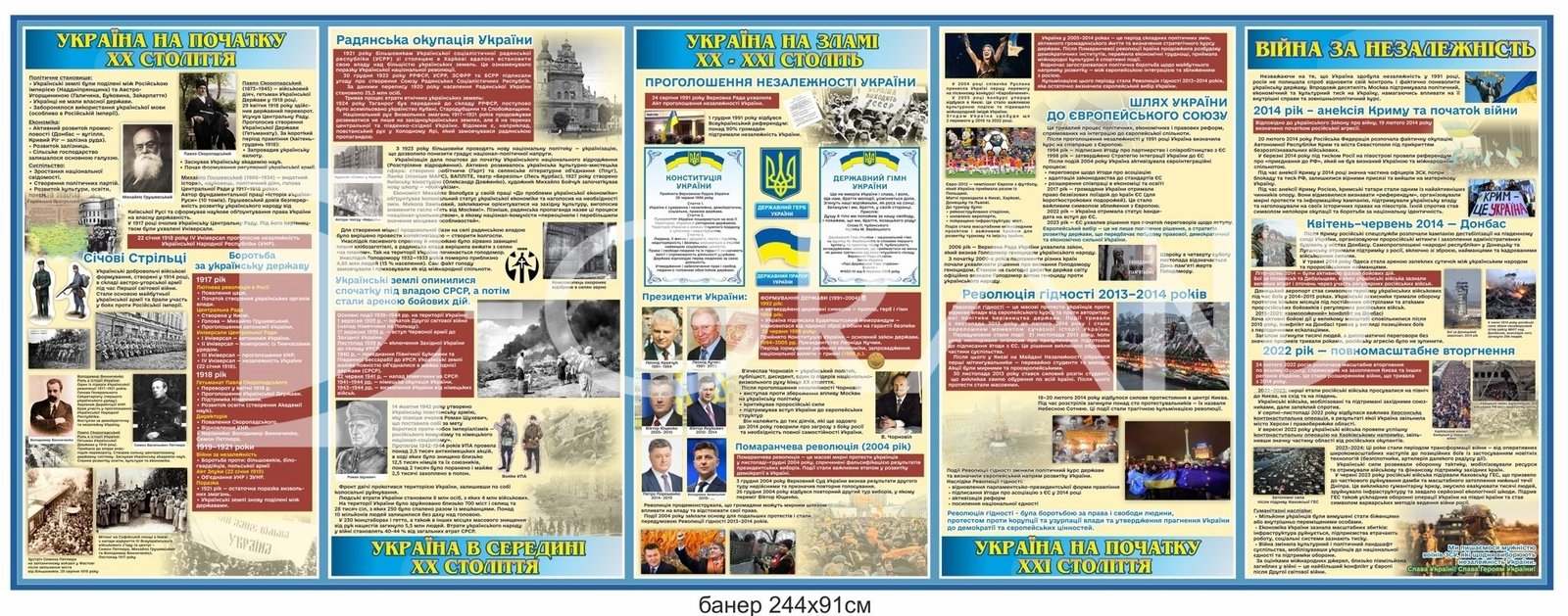 Такі банери стануть чудовим доповненням до сучасного кабінету історії та допоможуть учням краще зрозуміти складний, але надзвичайно важливий період розвитку української держави.