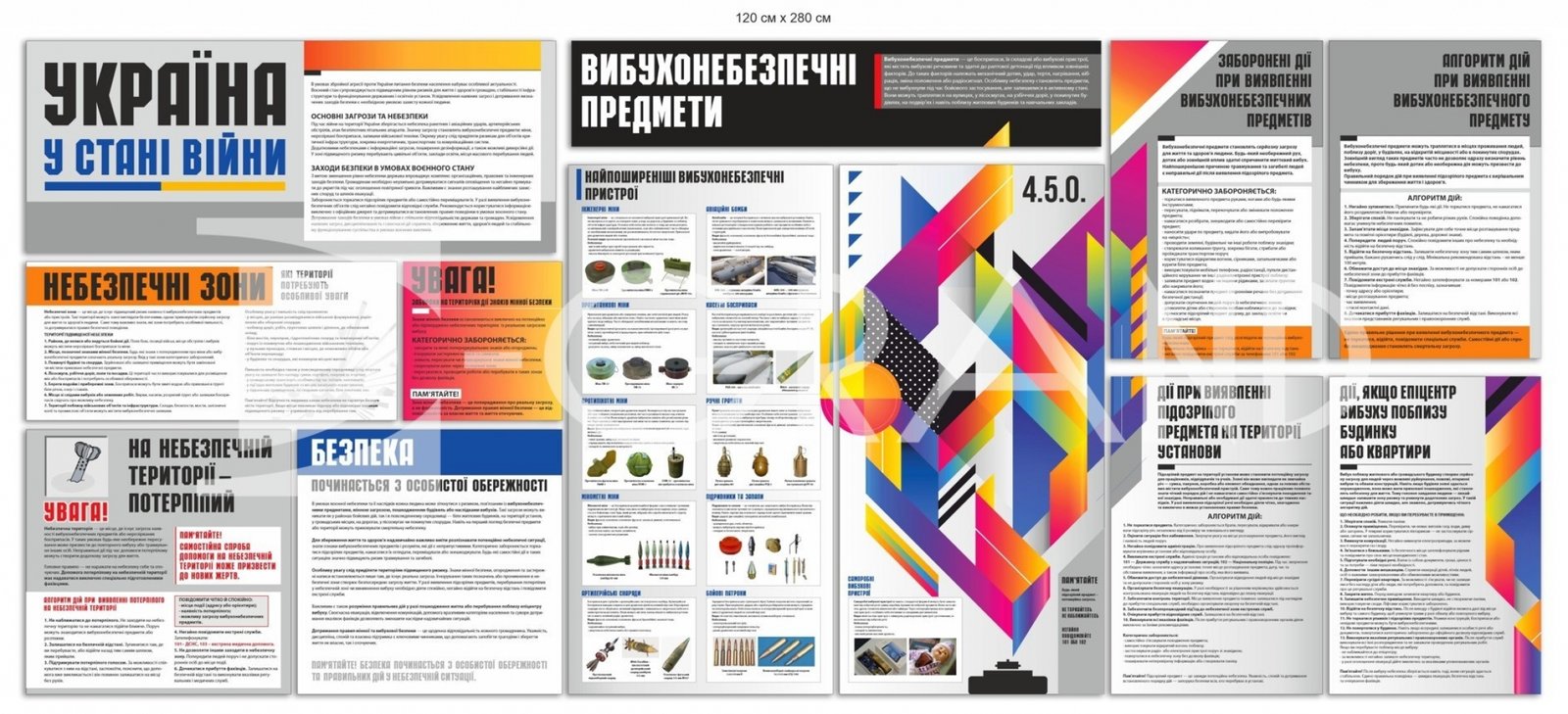 Важливим елементом є також блоки про небезпечні зони, правила поведінки на потенційно замінованих територіях та основи особистої безпеки. Інформаційні стенди допомагають сформувати відповідальне ставлення до власної безпеки та безпеки оточуючих. Це особливо актуально для регіонів, де існує підвищений рівень загроз.
