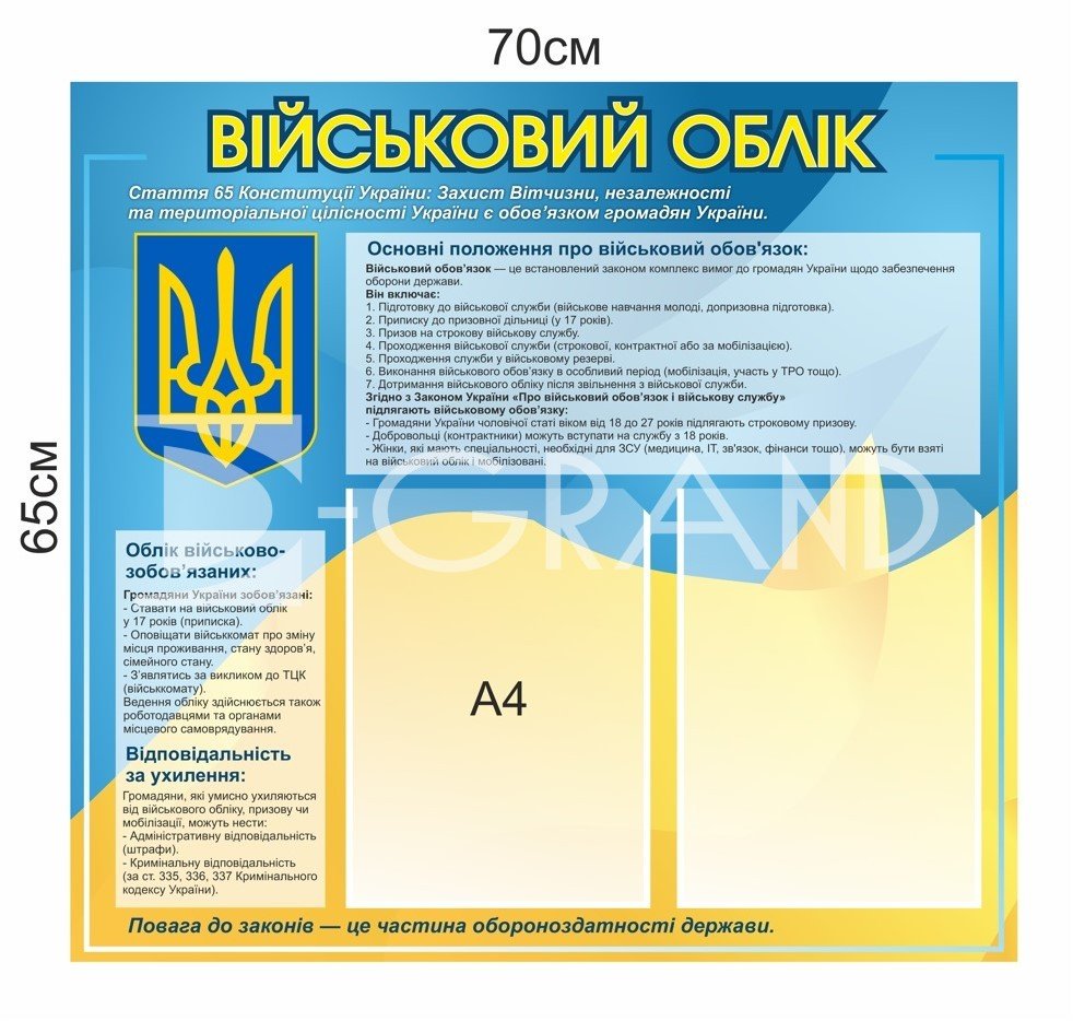 Якщо ви хочете облаштувати робоче місце відповідно до всіх вимог, обирайте надійні та сучасні інформаційні стенди від d-grand.com. Вони поєднують якість, практичність і зрозумілий дизайн, що стане вагомим внеском у ефективну організацію військового обліку.