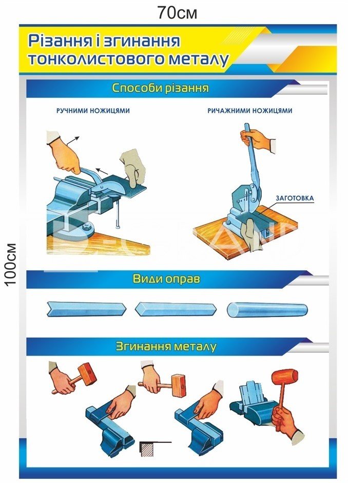 Комплект навчальних стендів «Обробка металу» – це зручний і наочний матеріал для кабінету трудового навчання. Стенди допомагають учням швидко засвоїти основні інструменти, прийоми та технології роботи з металом.