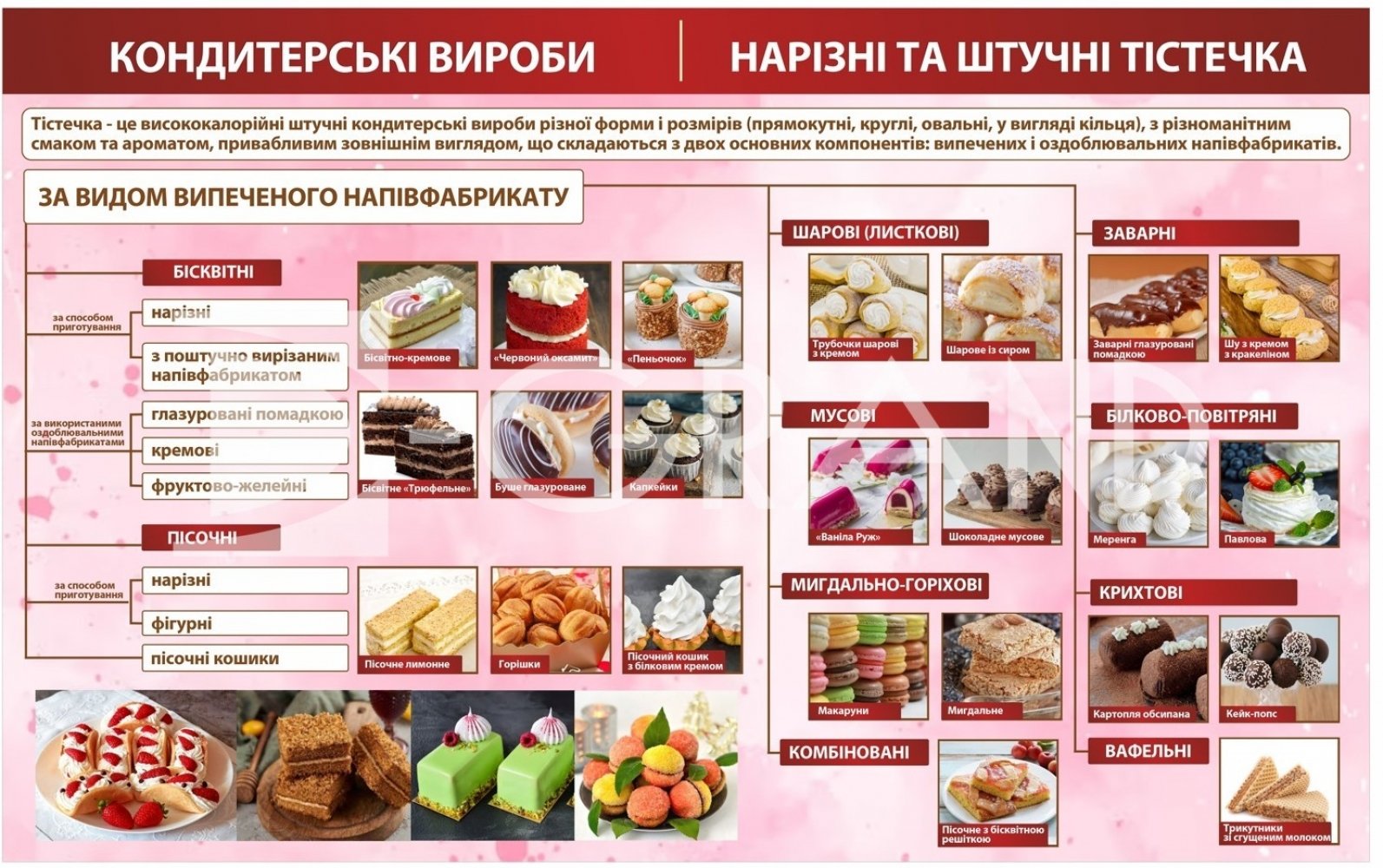 Навчальний плакат для кондитера "Нарізні та штучні тістечка"