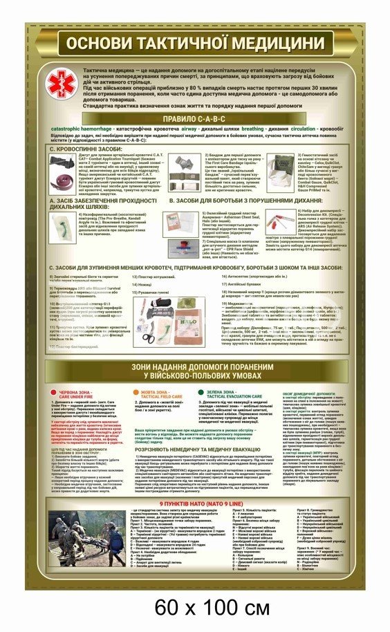 Цей плакат є незамінним інструментом для навчання особового складу методам збереження життя в умовах бойових операцій. Оскільки близько 80% смертей на полі бою стаються протягом перших 30 хвилин після поранення, опанування навичок самодопомоги та взаємодопомоги є пріоритетом номер один.