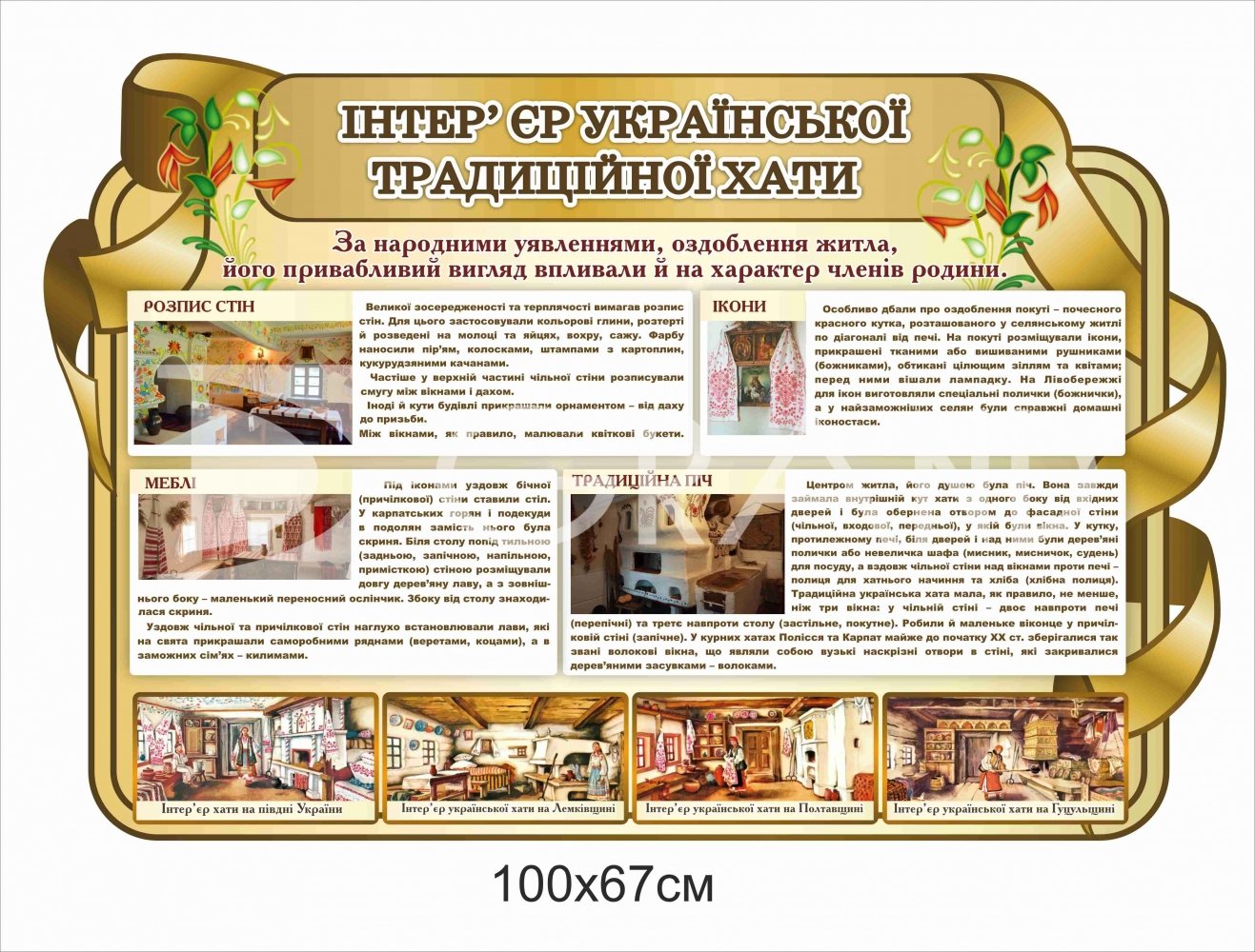 Такий плакат стане незамінним помічником на уроках народознавства, історії України, української мови та літератури, а також при оформленні кабінетів українознавства, шкільних музеїв, осередків національного виховання чи етнографічних куточків.