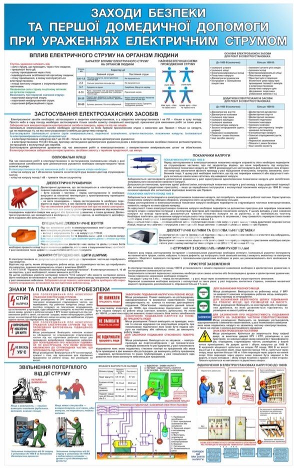 Електричний струм – це невидима, але надзвичайно небезпечна загроза, що може призвести до серйозних травм або смерті. Знання правил електробезпеки та вміння надати першу допомогу при ураженні струмом є критично важливими для збереження життя та здоров'я. Плакат "Заходи безпеки та допомоги при ураженні електричним струмом" від D-GRAND – це вичерпний та наочний посібник, який має бути у кожному приміщенні, де є ризик контакту з електрикою.