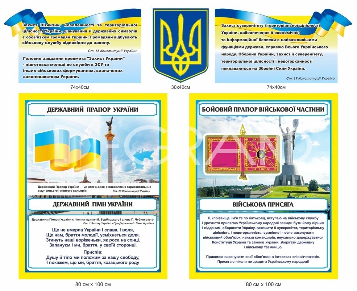 Символи української державності та військової доблесті - це стенди, які наочно демонструють ключові елементи національної ідентичності та військової честі. Ідеально підходить для оформлення шкільних кабінетів, зокрема «Захист України», патріотичних куточків, залів для урочистих заходів чи центрів національно-патріотичного виховання.