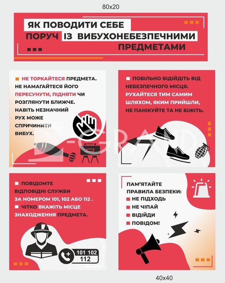 Замовляйте стенд «Як поводити себе поруч із вибухонебезпечними предметами» на d-grand.com прямо зараз!