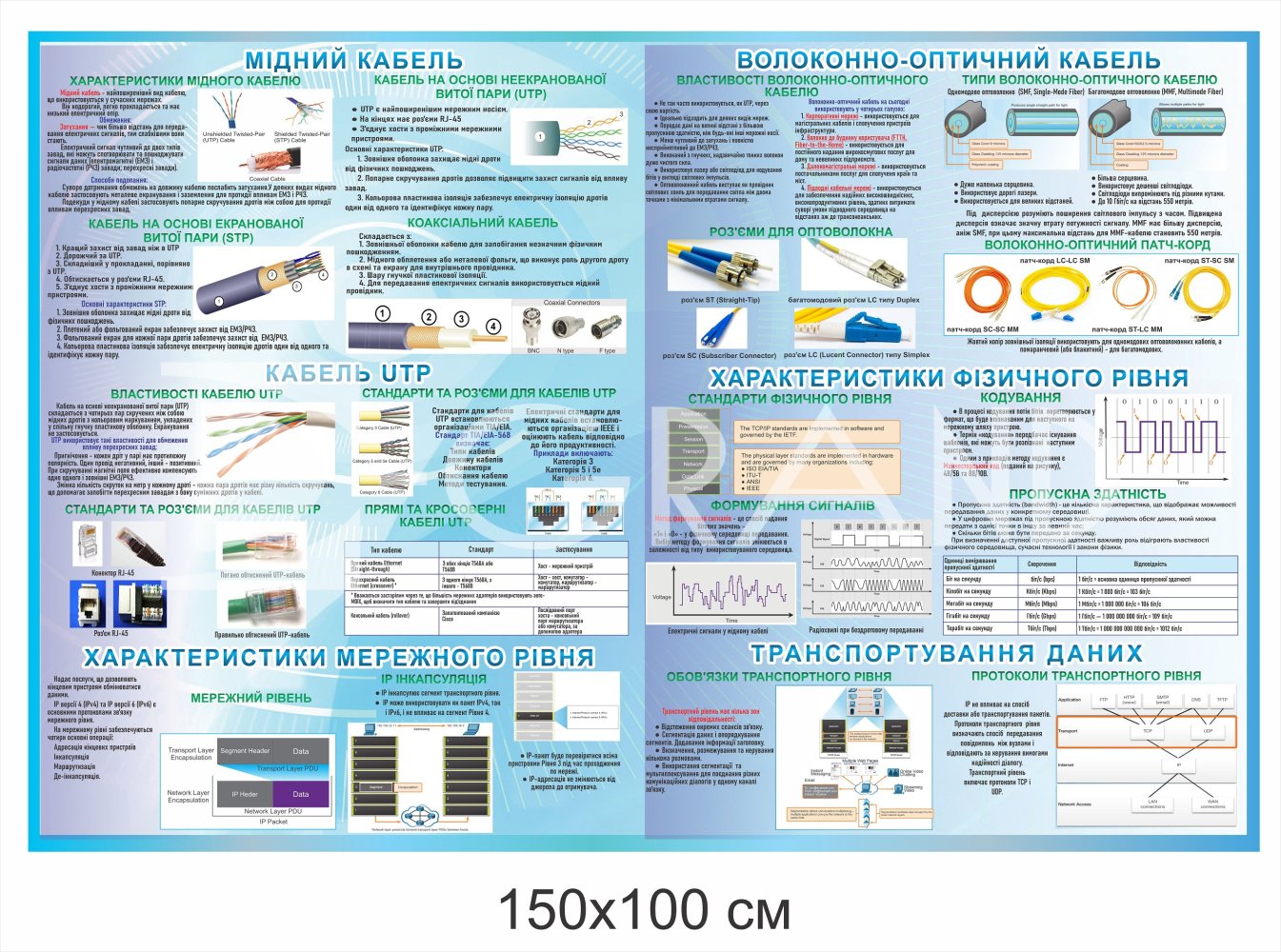 Стенд "Мідний кабель, характеристики мережевого рівня, волоконно-оптичний кабель, транспортування даних"