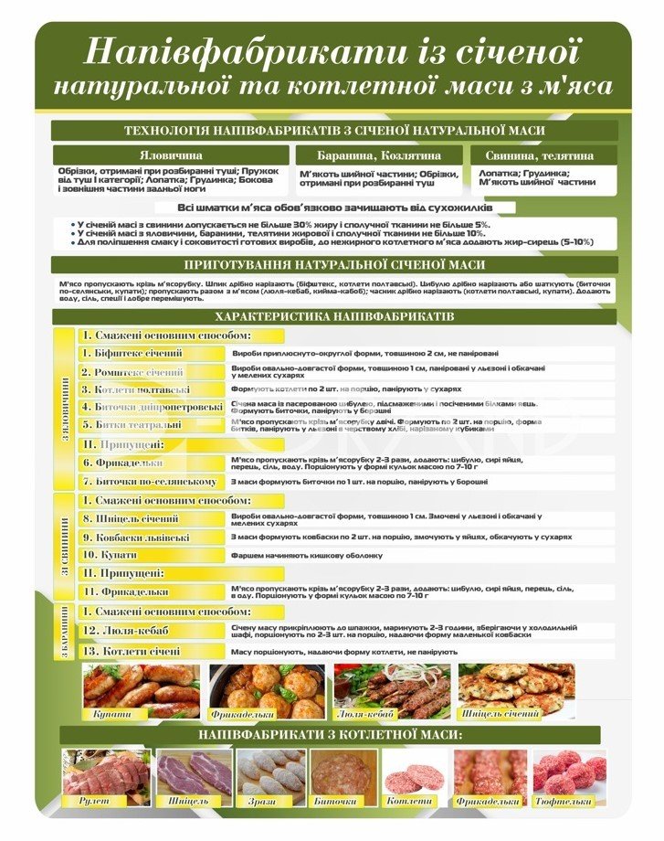 Стенд "Напівфабрикати із січеної натуральної та котлетної маси з м'яса"