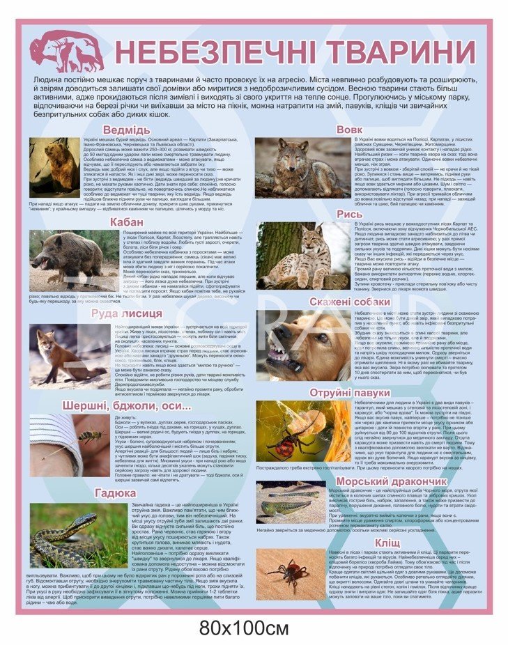 Зростаюча урбанізація та одночасне збільшення популярності активного відпочинку на природі вимагають від громадян, особливо дітей, знання правил безпечного поводження з дикими та небезпечними тваринами. Стенд "Небезпечні Тварини" від D-GRAND — це вичерпний, наочний посібник, що надає критично важливу інформацію для запобігання травмам та нещасним випадкам.