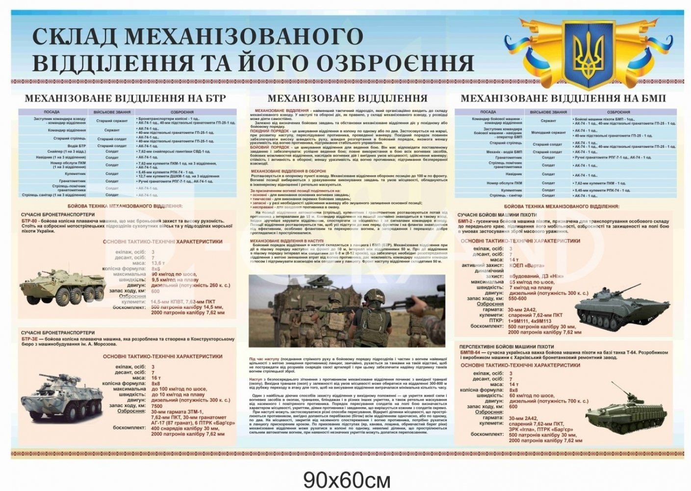 Стенд «Склад механізованого відділення та його озброєння» — це сучасний навчально-інформаційний матеріал, який наочно демонструє структуру механізованого підрозділу та його оснащення.