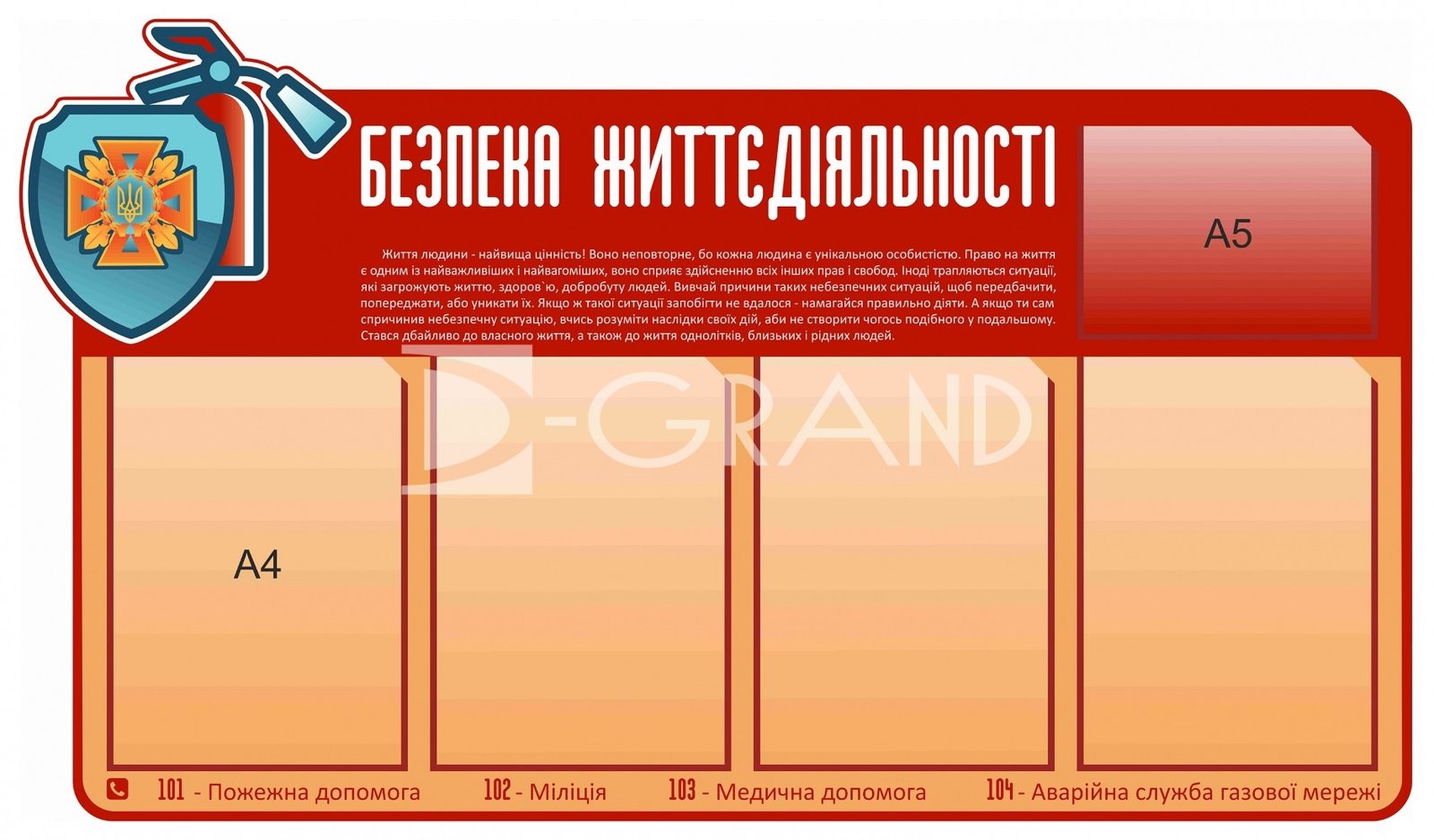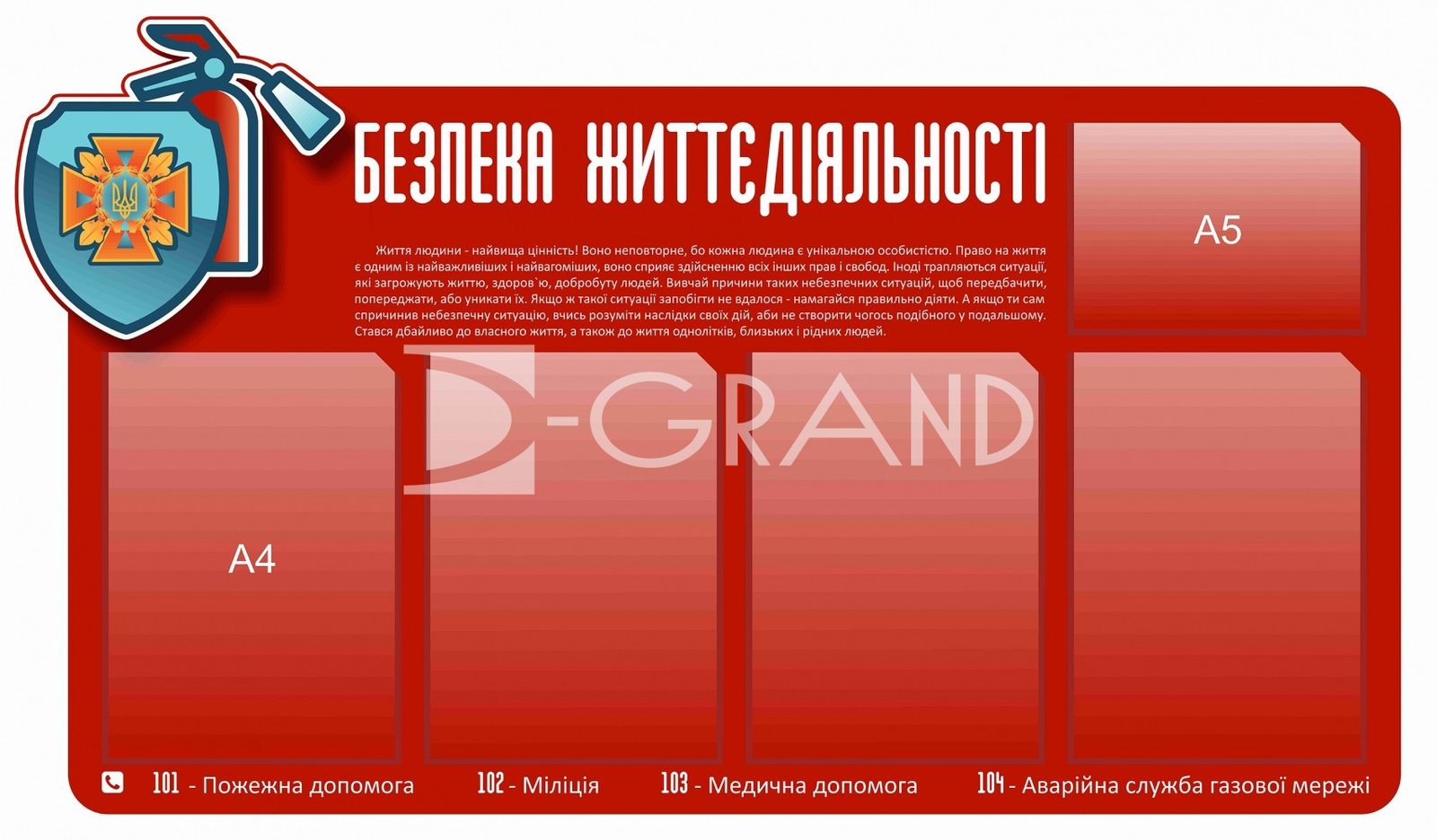 Стендів «Безпека життєдіяльності» з кишенями