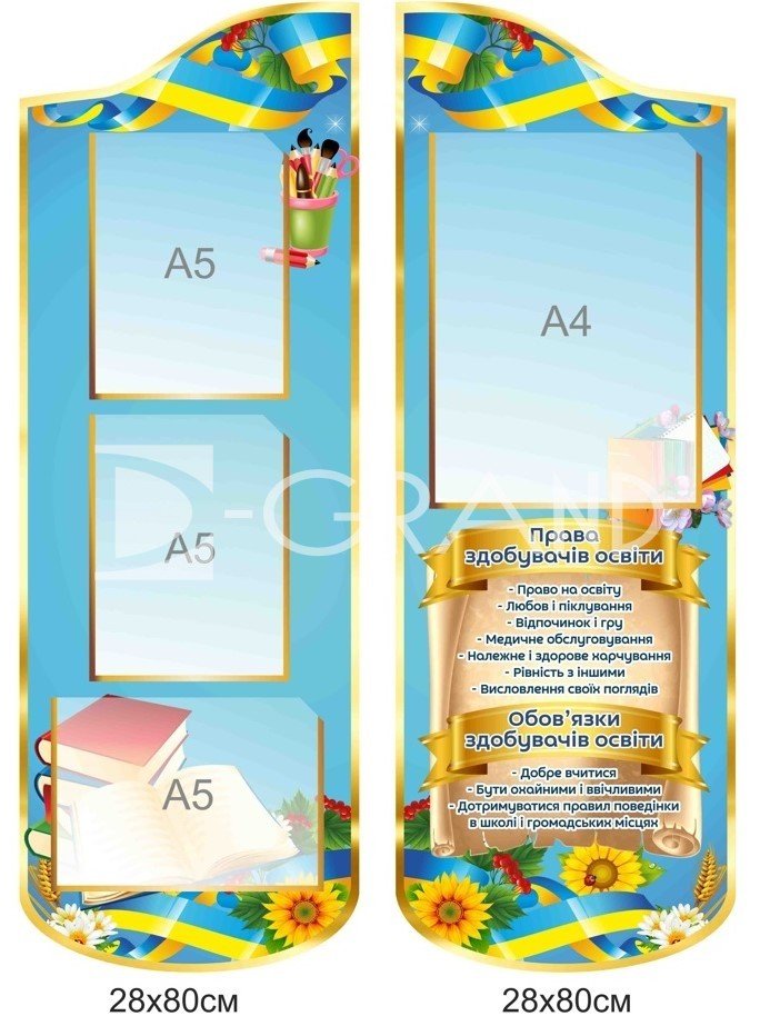- Стенди покриваються плівкою з повнокольоровим друком.