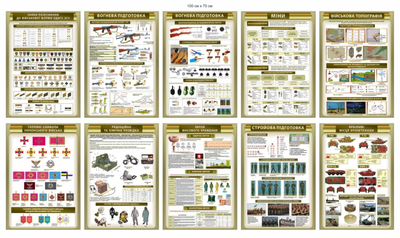 Стенди з основ військової підготовки допоможуть систематизувати знання з основ військової справи з темами: