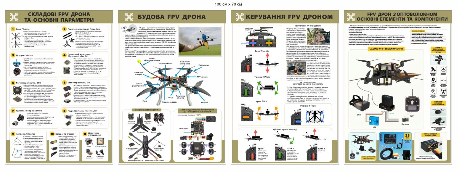 Комплект стендів «Будова та використання дронів» пояснюють: