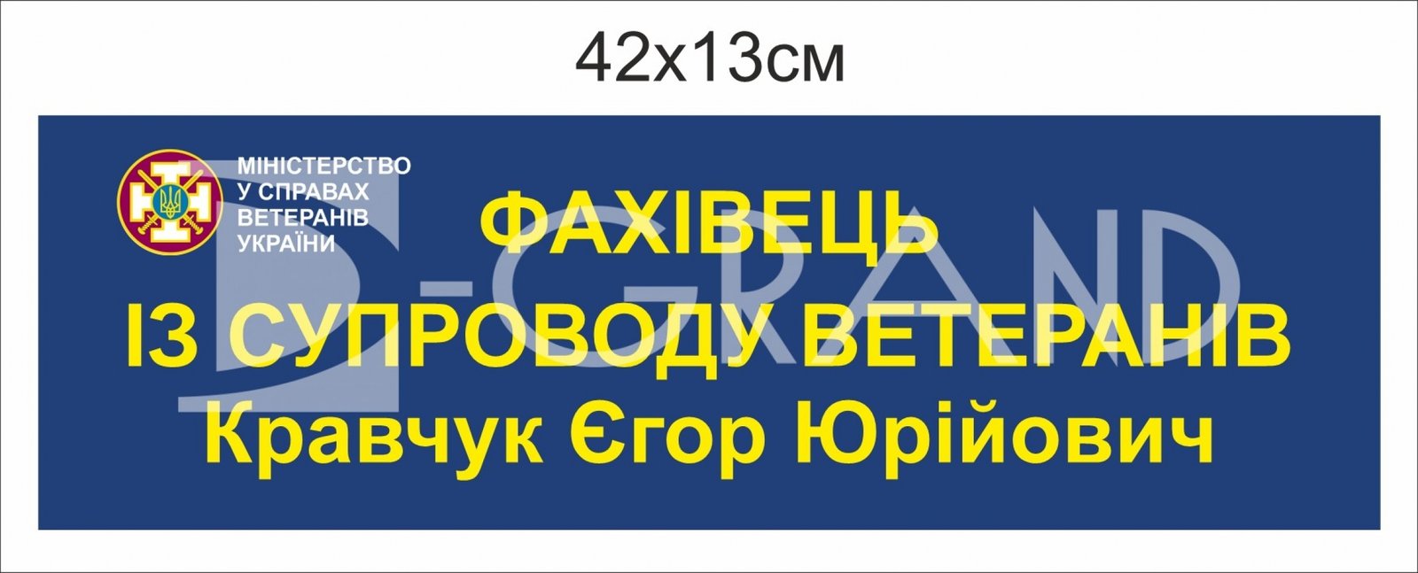 Табличка на двері «Фахівець із супроводу ветеранів» призначена для чіткого та коректного позначення кабінету спеціаліста, який надає консультаційну та організаційну підтримку ветеранам та членам їхніх сімей.