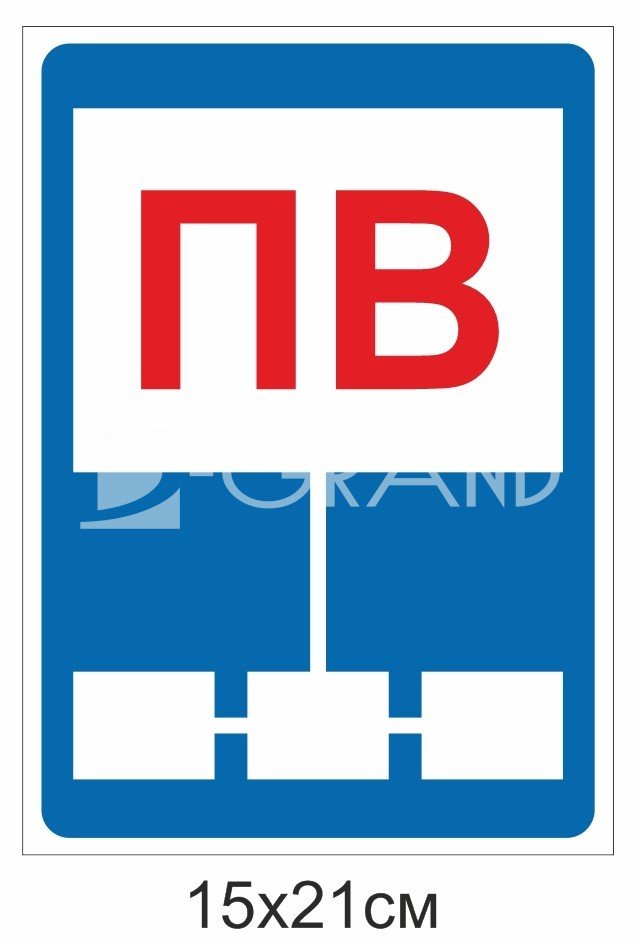 Табличка «ПВ (Пожежна водойма)» призначена для позначення місця, де розташоване джерело води, що використовується у випадку пожежі. Такі знаки є обов’язковими на території підприємств, фермерських господарств, складів, житлових масивів, освітніх закладів та в інших місцях, де діє план евакуації чи протипожежний захист.