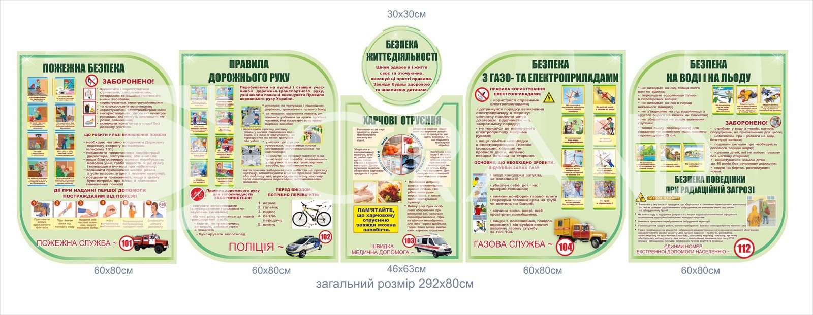 - Стенди покриваються плівкою з повнокольоровим друком.