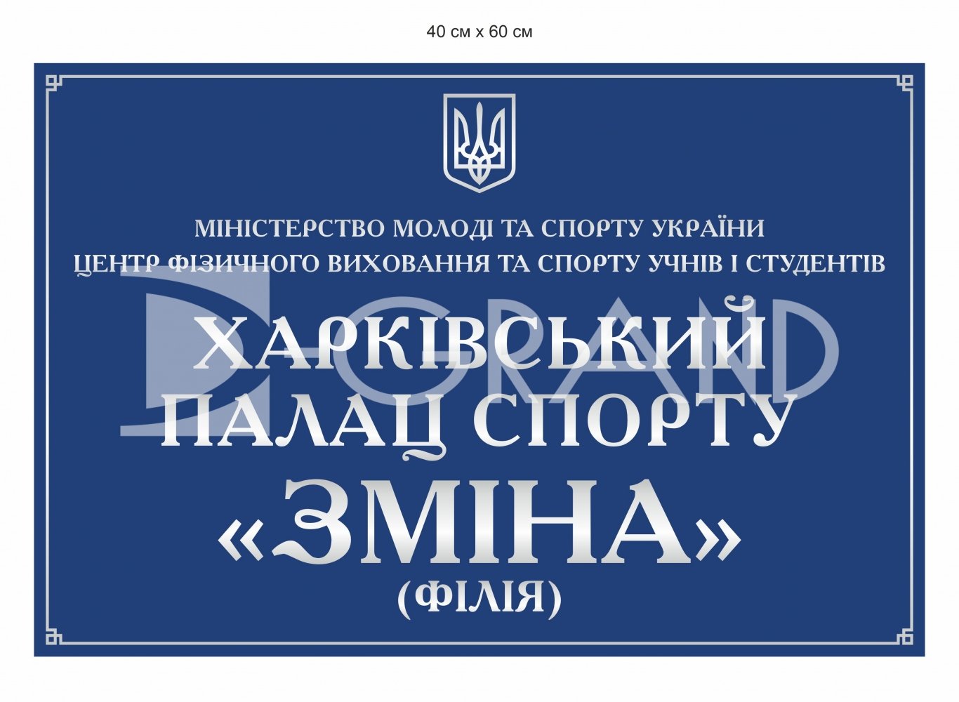 Фасадна табличка для палацу спорту – це важливий елемент зовнішнього оформлення спортивного об'єкта, що виконує як інформаційну, так і представницьку функцію. Така табличка встановлюється на головному фасаді будівлі або біля входу і містить повну офіційну назву закладу, логотип, герб громади чи міста, режим роботи та інші необхідні реквізити.