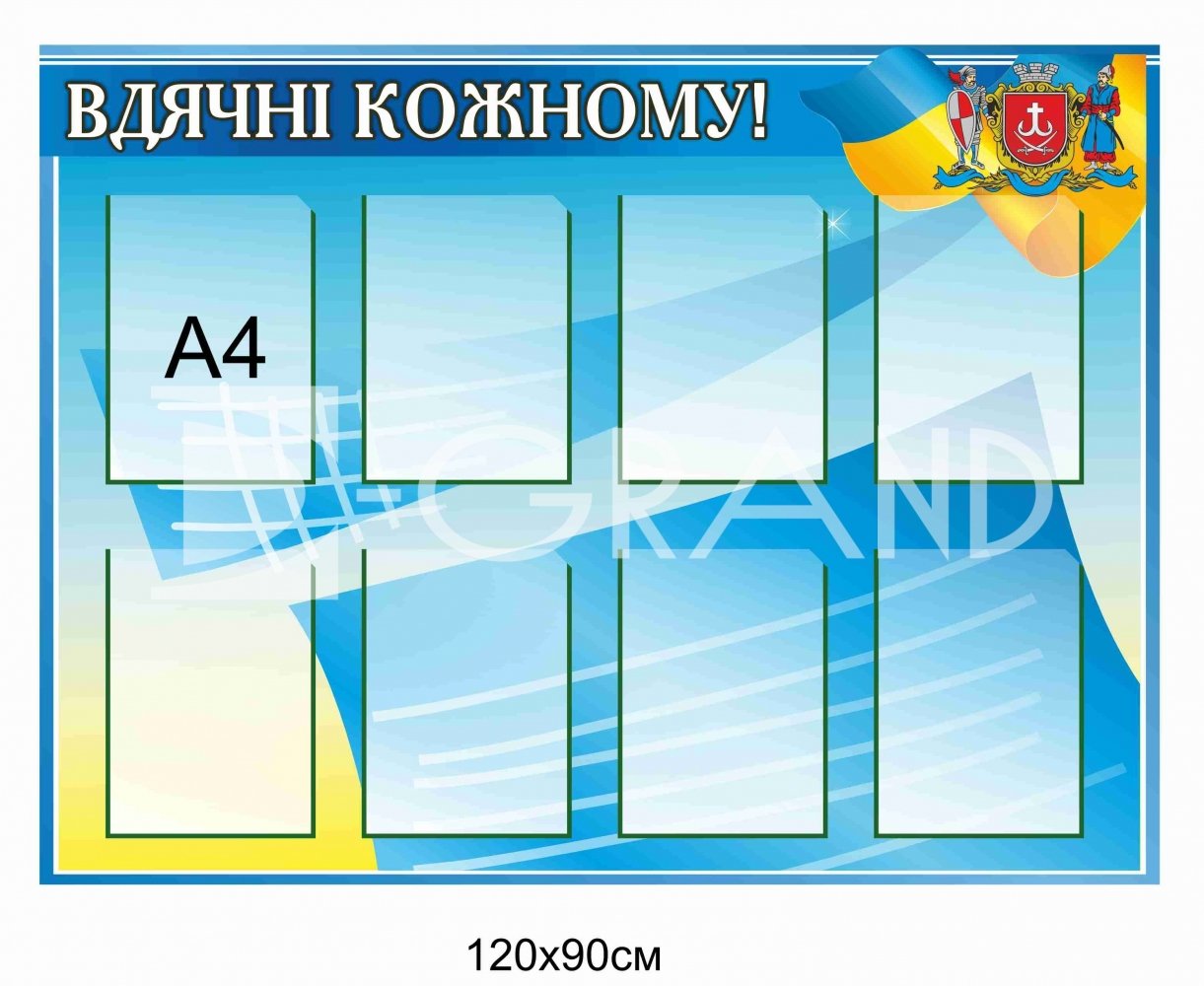 Інформаційний патріотичний стенд «Вдячні кожному» – це стильний та змістовний елемент оформлення для шкіл, ліцеїв, держустанов, громадських центрів та інших закладів, де важливо підкреслити повагу до українських захисників і громадян, які роблять свій внесок у розвиток та безпеку країни. Стенд виконує не лише декоративну функцію, а й виховну, формуючи у відвідувачів почуття вдячності, єдності та національної гідності.