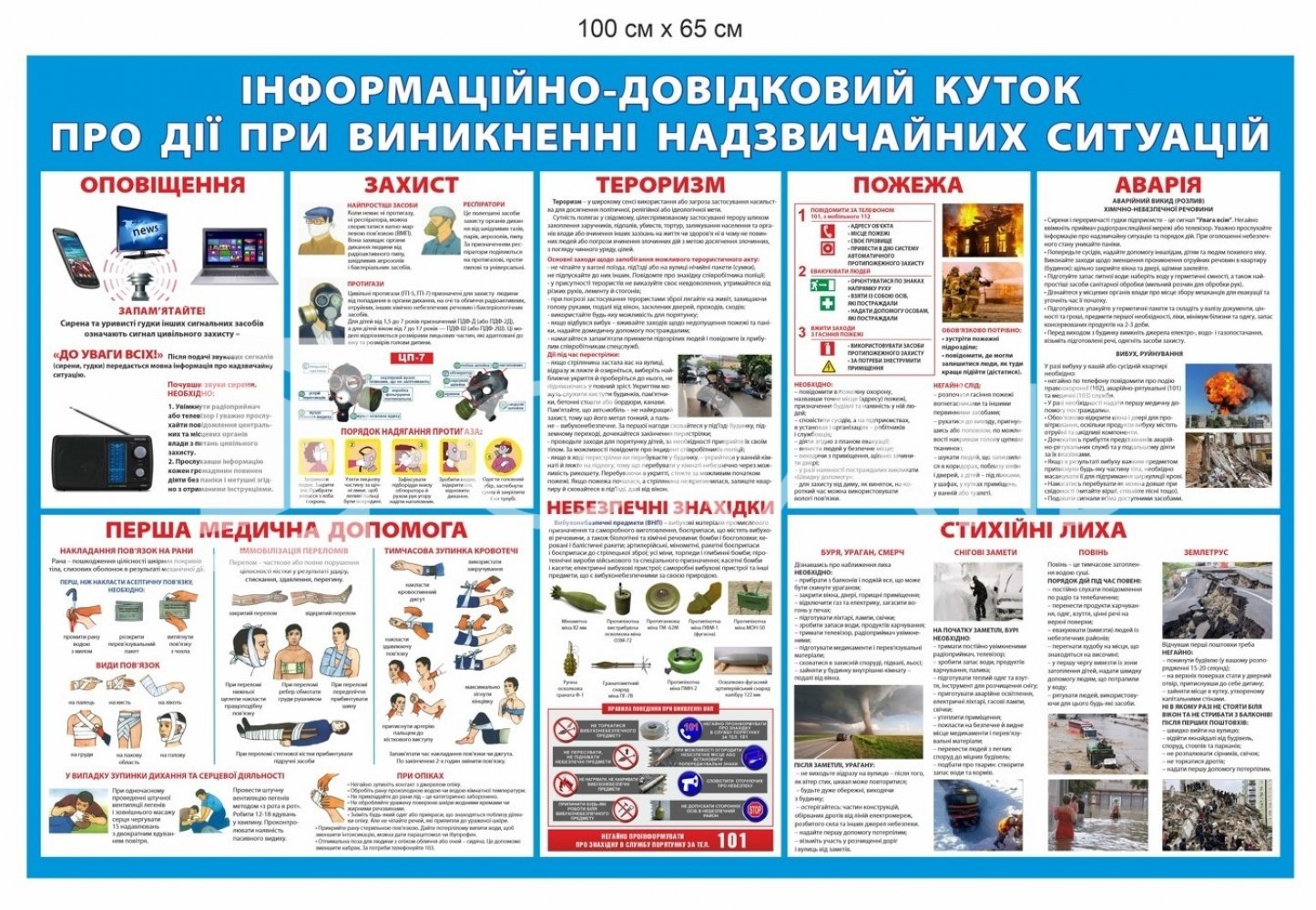Цей стенд є обов'язковим для шкіл, навчальних закладів, підприємств, державних установ, ЦНАПів, ТЦК та СП, а також для місць укриття.