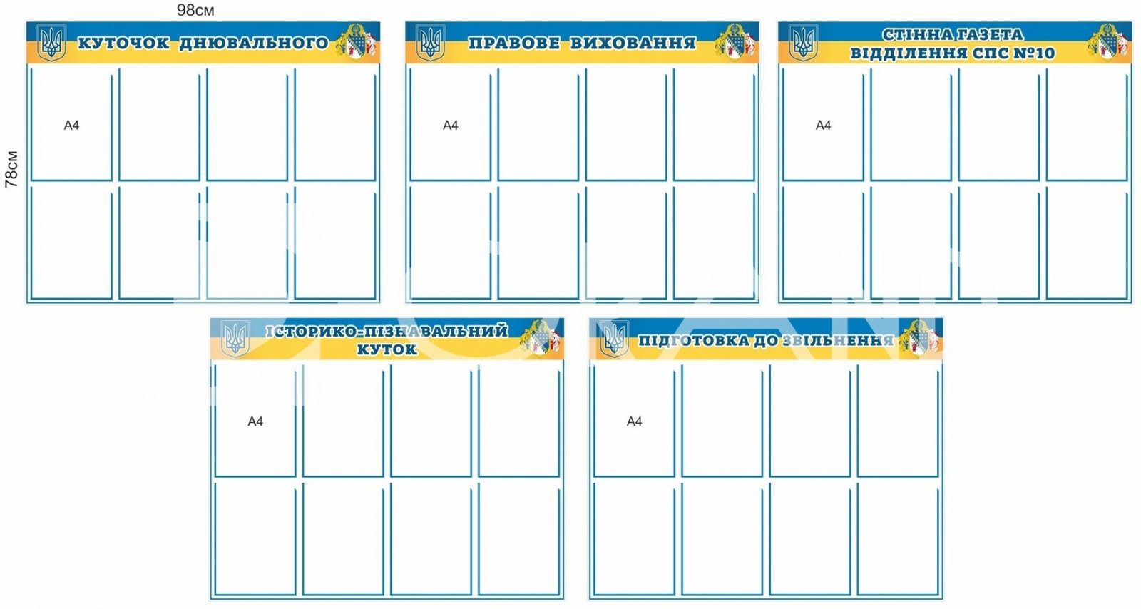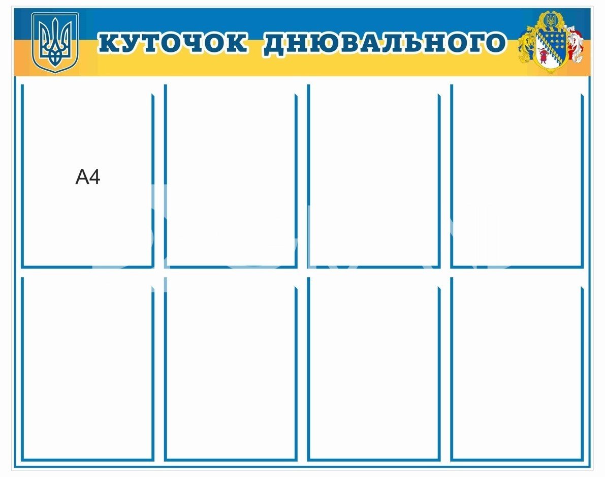 - Стенд із основною інформацією для днювального: розклад чергувань, інструкції щодо обов’язків, порядок дій у надзвичайних ситуаціях. Кишені на стенді дозволяють зручно розміщувати змінні графіки, службові записки та оголошення.