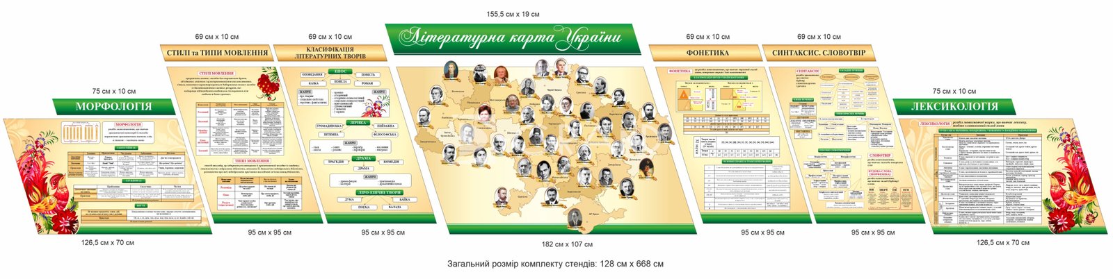 Наш комплект стендів надає змогу глибше зрозуміти та осмислити різноманітні аспекти мови та літератури. Кожен стенд містить важливу інформацію про такі теми: