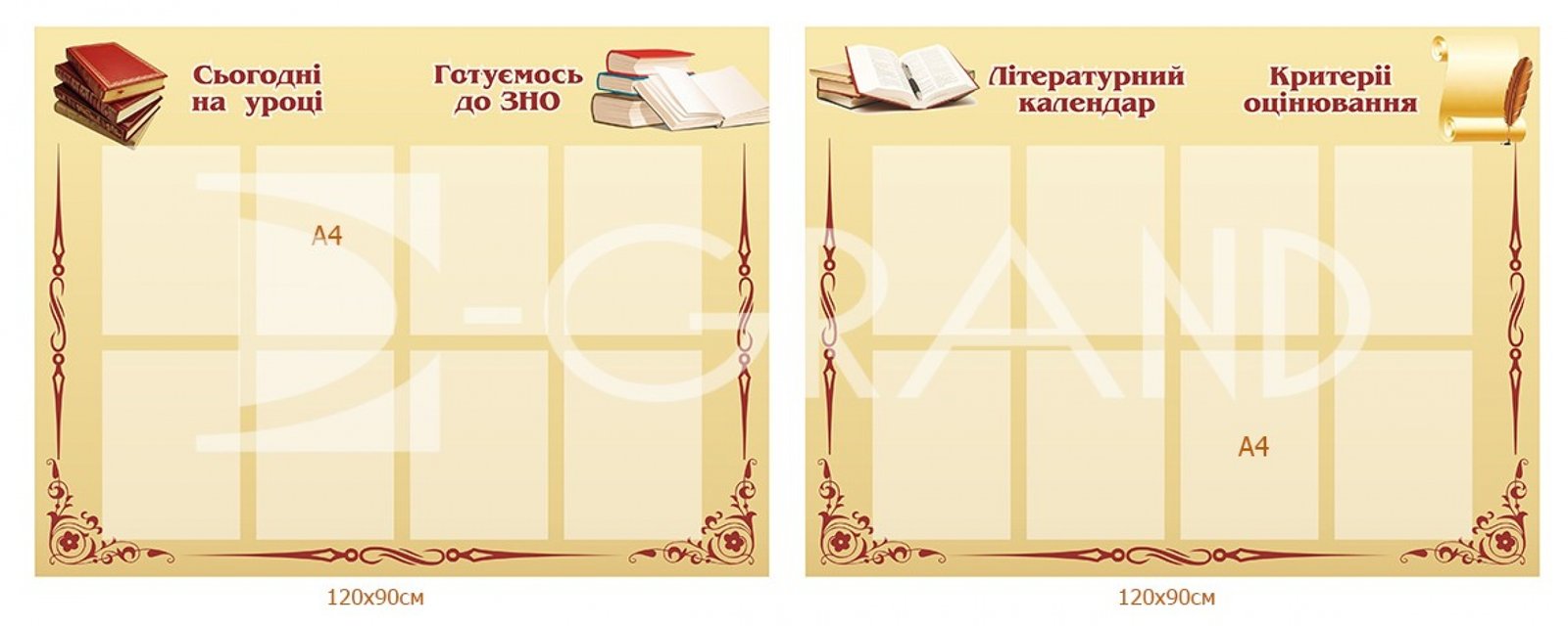- Стенди покриваються плівкою з повнокольоровим друком.