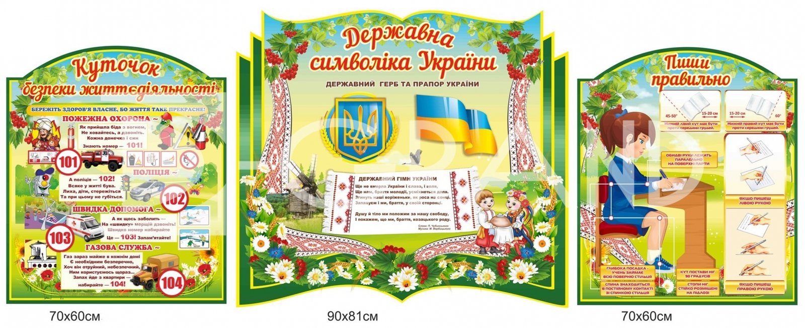 Комплект стендів допомагає організувати навчальний процес, сприяє патріотичному вихованню, підтримці дисципліни, розвитку грамотності та формуванню культури безпеки серед учнів. Він допомагає зробити навчання більш цікавим і доступним, а також забезпечує важливу інформацію для повсякденного життя і навчання.