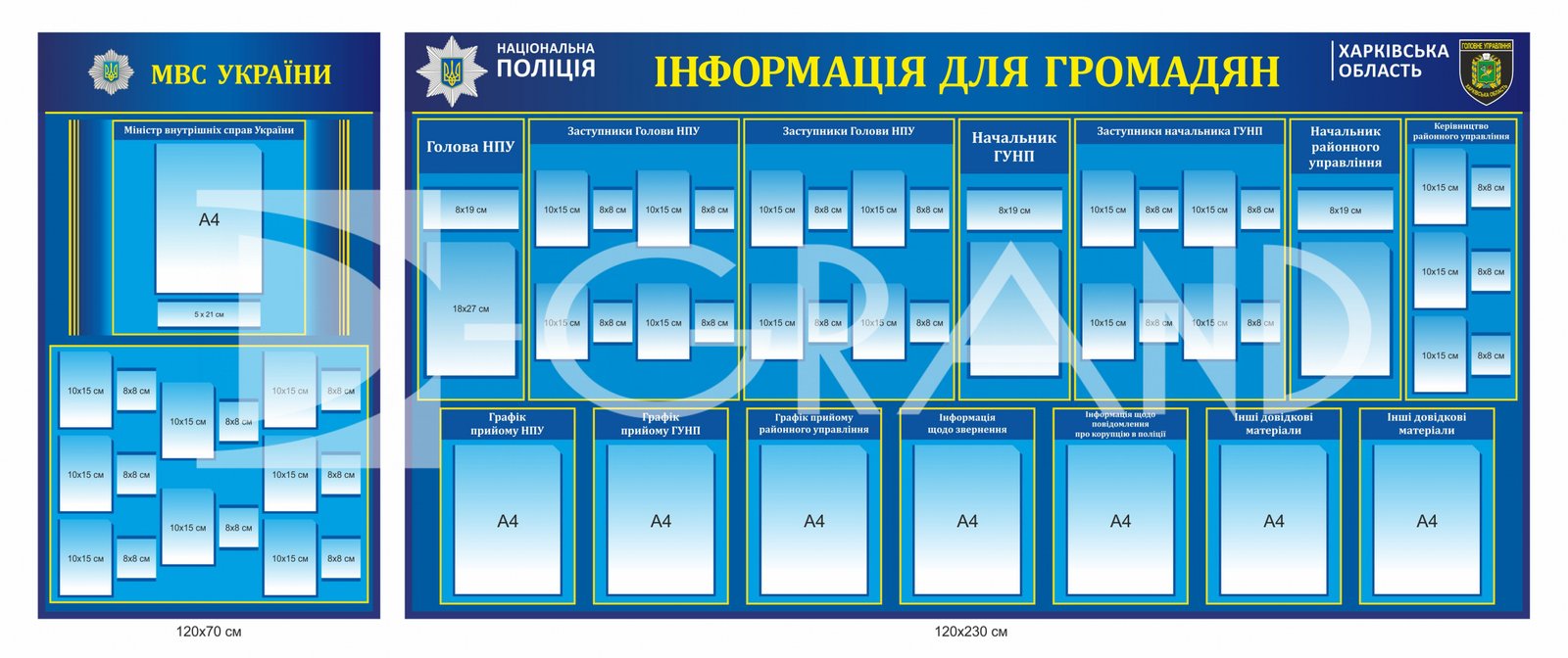 - Стенди покриваються плівкою з повнокольоровим друком.