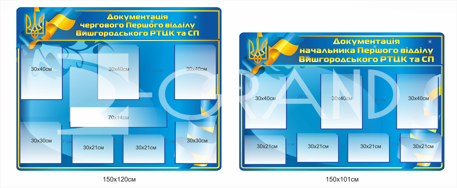 - Всі стенди виробляються з пластика ПВХ товщиною 4 мм. Ви можете зменшити вартість Вашого замовлення, замовивши виготовлення на ПВХ 3 мм.