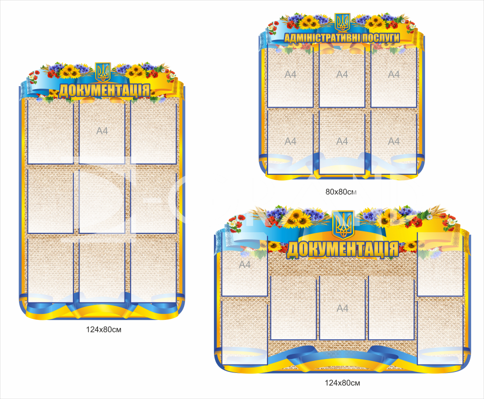 - Стенди покриваються плівкою з повнокольоровим друком.