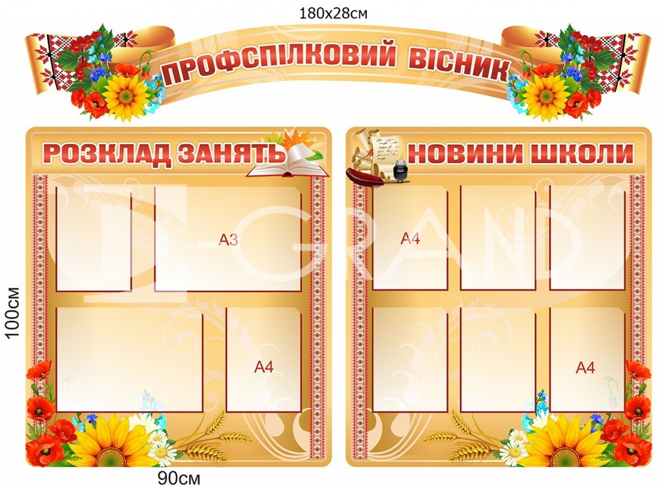 • у комплекті ви отримаєте спеціальні канцелярські цвяхи, за допомогою який Ви можете закріпити стенд до стіни.