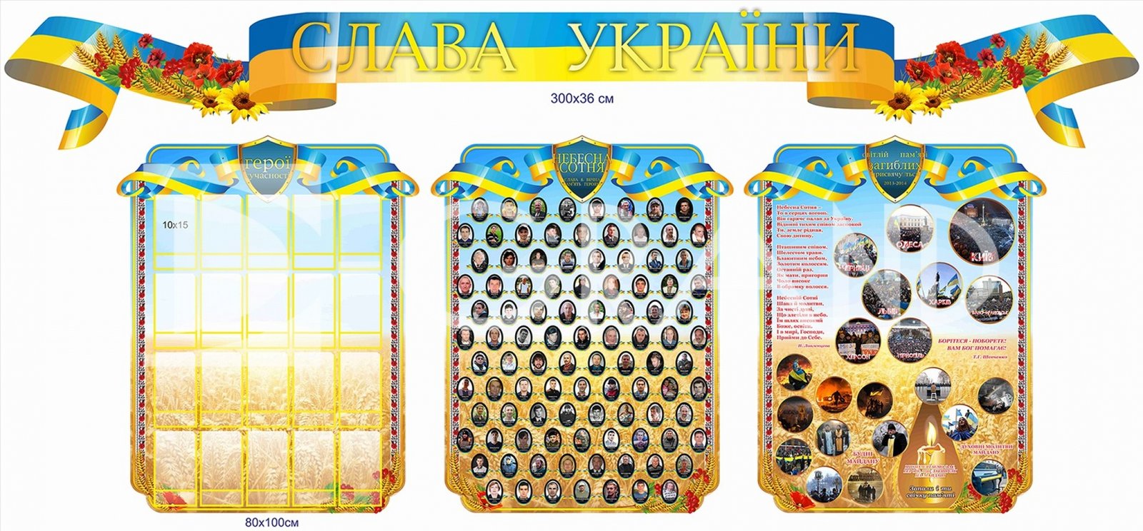 Комплект стендів 'Слава Україні' на D-Grand.com дозволяє відзначити велику історію та культуру України. Цей комплект стендів містить різноманітні наглядні матеріали, портрети видатних українців, символіку та важливу інформацію про історію та культурне спадщину України. Ви зможете створити атмосферу патріотизму та гордості в своїй організації, школі або спільноті, привернувши увагу до значущих досягнень та цінностей нашої країни. Замовте комплект стендів 'Слава Україні' та розкажіть світу про нашу багату спадщину.