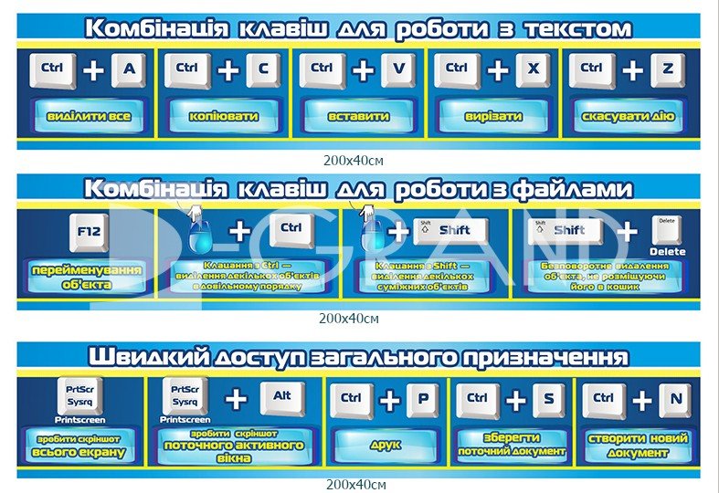 Набір стендів «Основні комбінації клавіш»