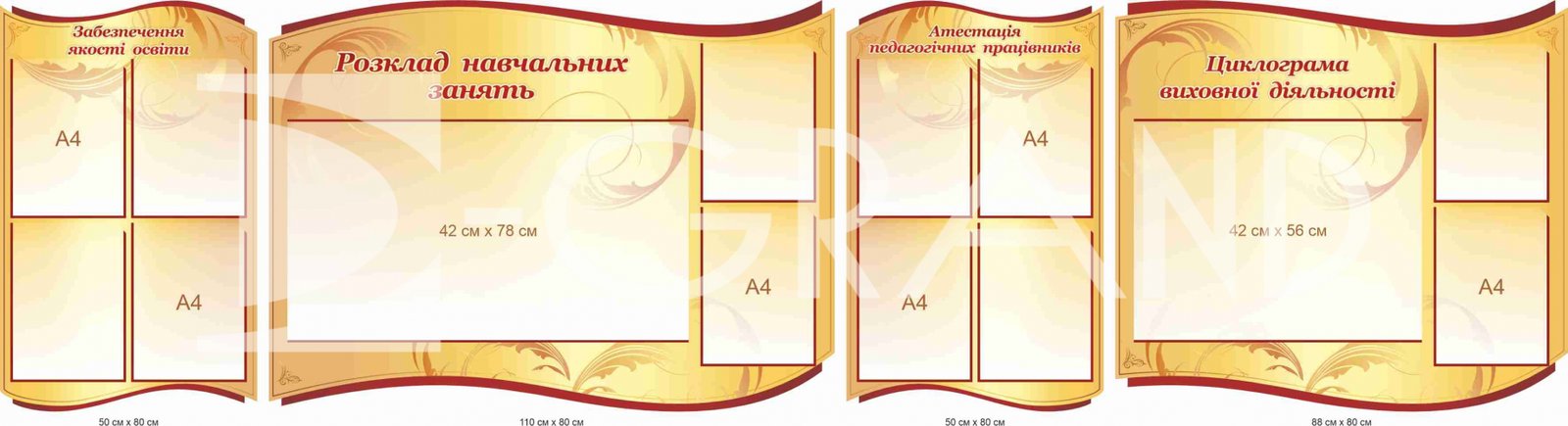 - Стенди покриваються плівкою з повнокольоровим друком.