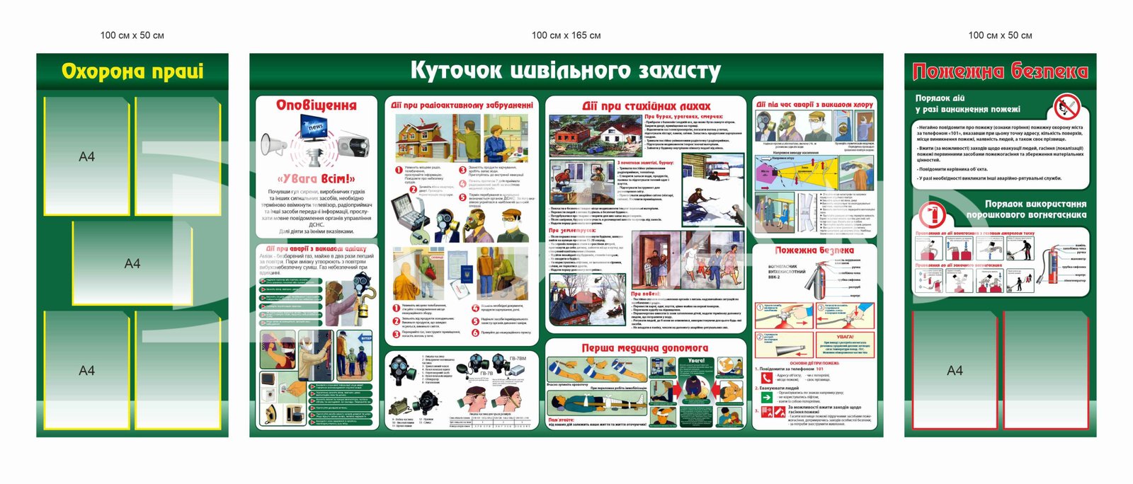 - Стенди покриваються плівкою з повнокольоровим друком.