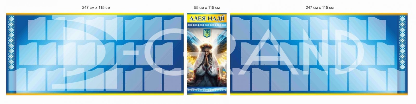 Композиція стендів «Алея Надії» — це гармонійне поєднання сучасних матеріалів і глибокої символіки української надії та сили духу.