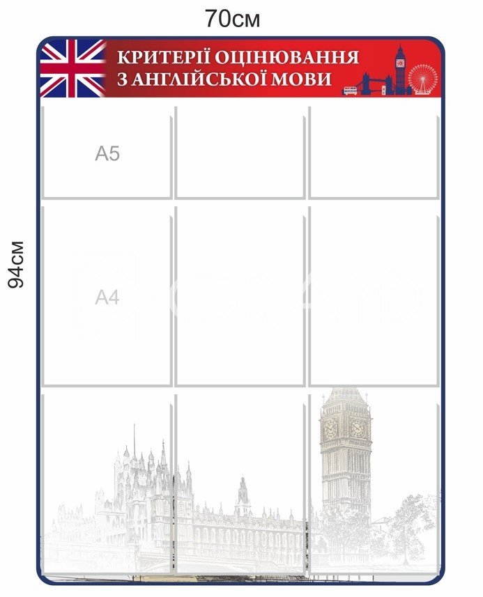 Стенд з кишенями для критеріїв оцінювання з англійської мови є чудовим ресурсом для учнів та вчителів, який допомагає зрозуміти, на що слід звертати увагу під час вивчення мови та які навички будуть оцінюватися. Такий стенд сприяє підвищенню прозорості процесу оцінювання, мотивує учнів до самовдосконалення та покращення своїх знань.