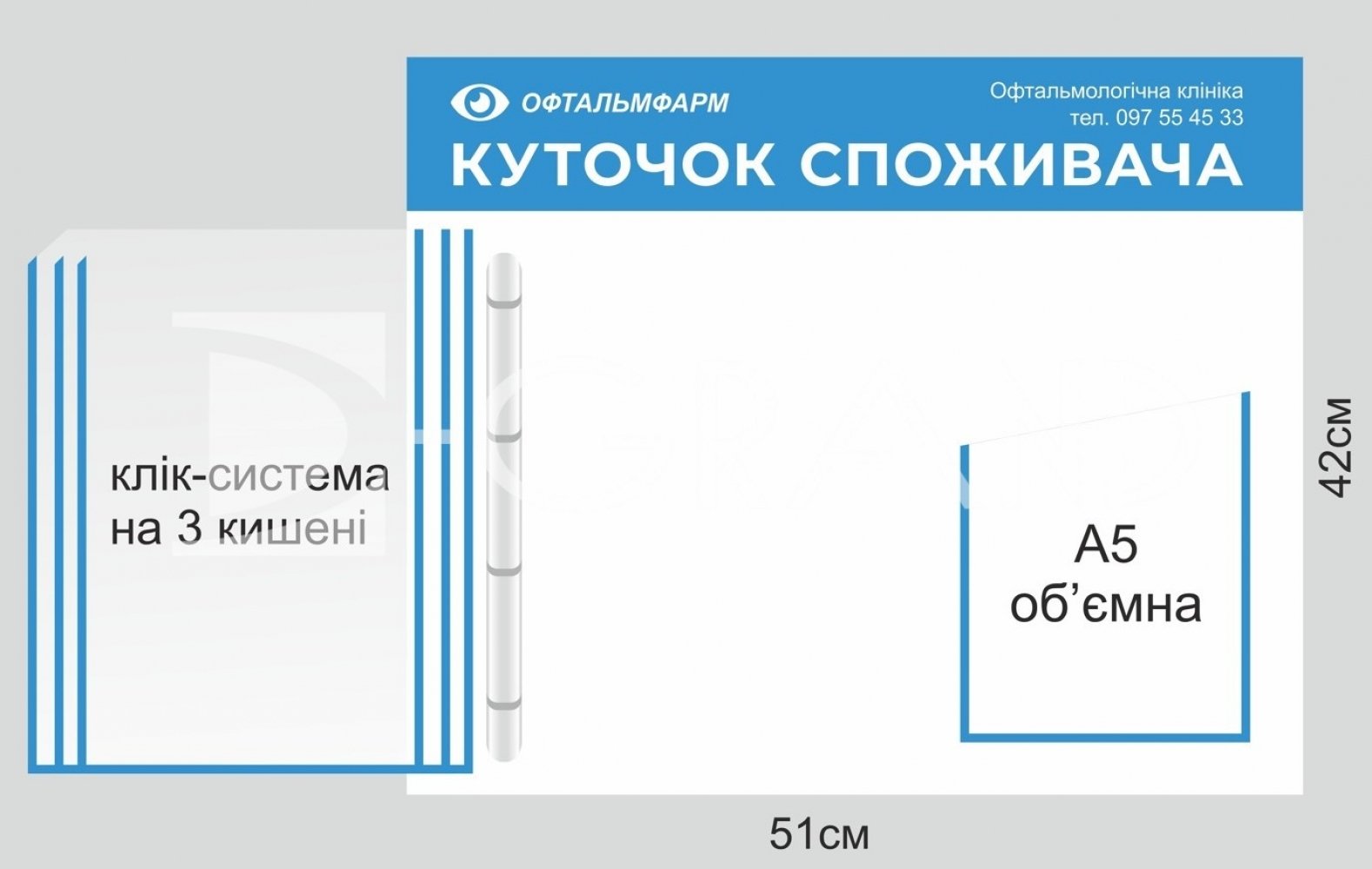 Куточок споживача для офтальмологічної клініки — це обов’язковий інформаційний стенд, що містить найважливіші дані для пацієнтів. Такий стенд не лише відповідає вимогам законодавства, але й підвищує довіру до клініки, демонструючи відкритість та прозорість обслуговування.