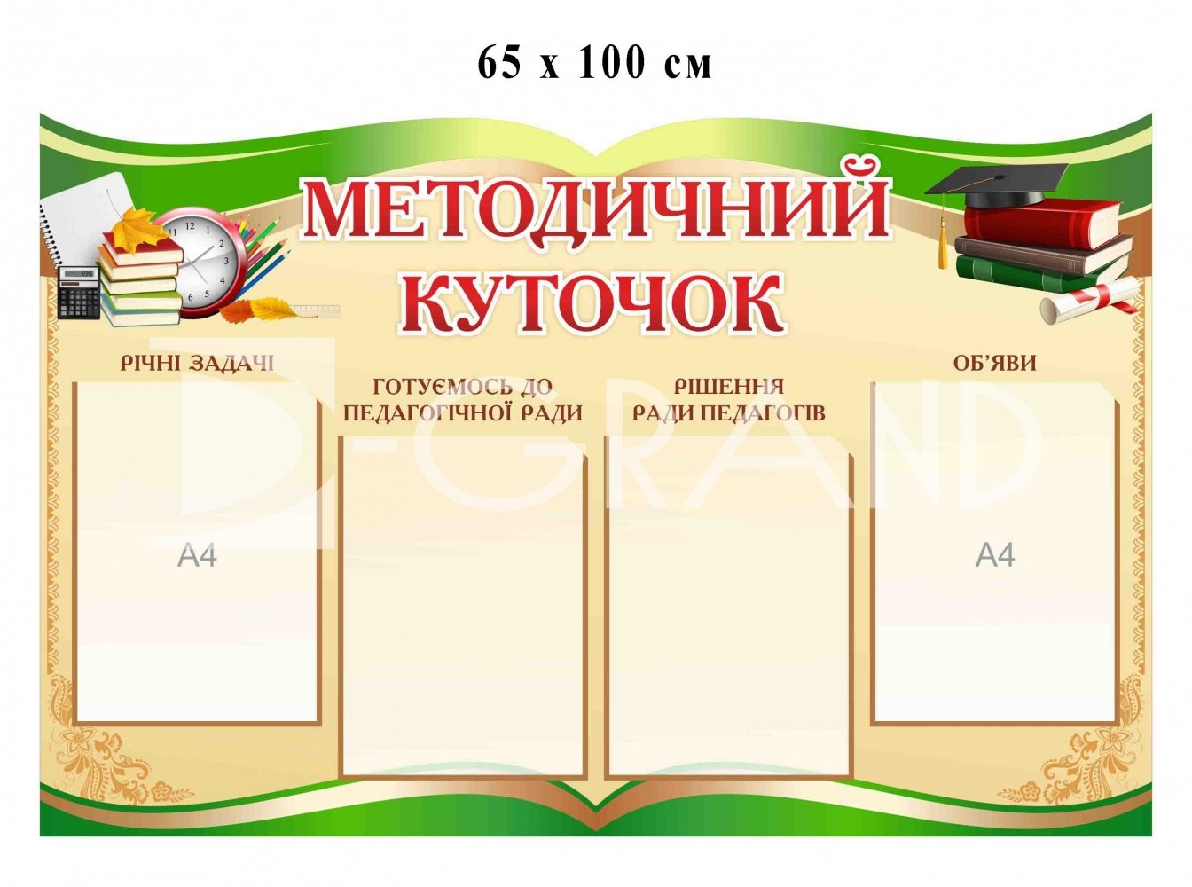 • у комплекті ви отримаєте спеціальні канцелярські цвяхи, за допомогою який Ви можете закріпити стенд до стіни.