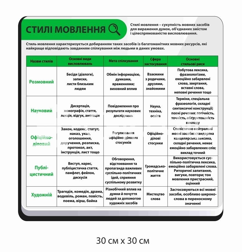 6. Стенд для школи "Стилі мовлення"