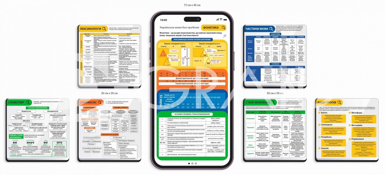Набір стендів в кабінет української мови та літератури — це чудовий інструмент для кабінету, який допомагає учням засвоїти ключові мовні поняття і правила. Вони є незамінними помічниками вчителя, полегшуючи пояснення складних тем і сприяючи ефективному запам’ятовуванню інформації. У даному наборі стендів розглянуті основні розділи української мови, які допоможуть учням підготуватися до уроків, контрольних робіт і зовнішнього незалежного оцінювання.
