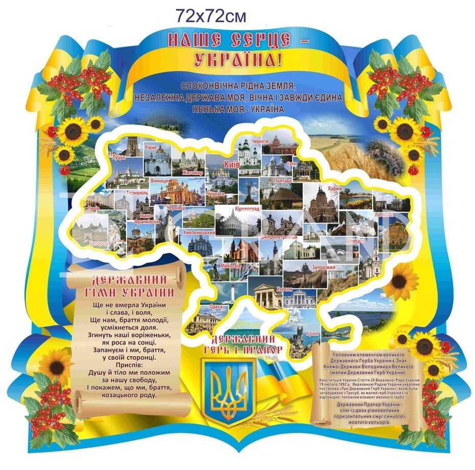 Стенд "Наше серце — Україна" має стати символом єдності, патріотизму та любові до Батьківщини. Це ідеальний стенд для шкіл, дитячих садків, громадських організацій чи будь-якого іншого закладу, де важливо підкреслити значення національної ідентичності, культурних цінностей та героїзму українського народу. Такий стенд сприяє вихованню у дітей та молоді почуття гордості за свою країну та її героїв.