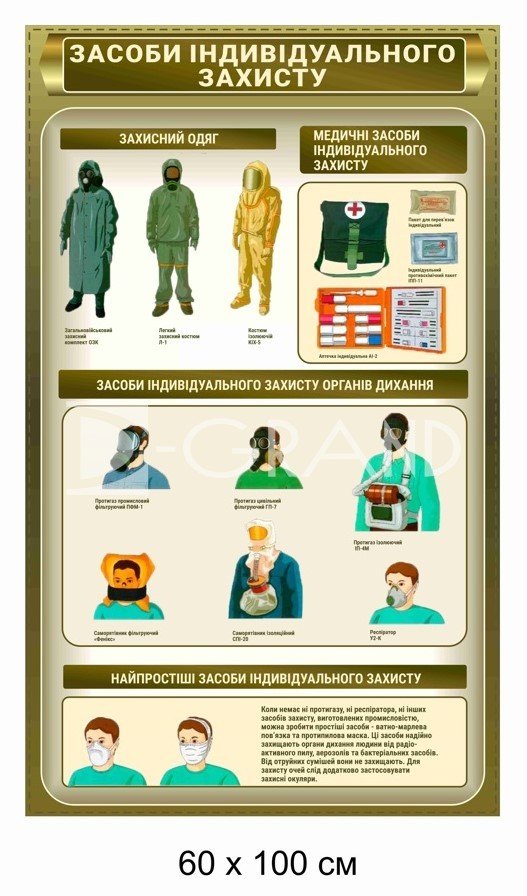 Плакат «Засоби індивідуального захисту» від D-Grand — це ефективний інструмент для наочного навчання та сучасного оформлення освітнього простору.