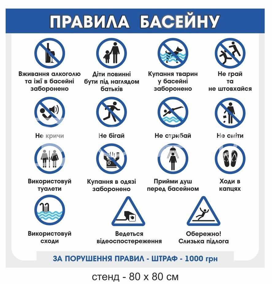 Басейн – це місце для відпочинку, оздоровлення та активного дозвілля. Проте, щоб забезпечити приємне та безпечне перебування для кожного відвідувача, необхідно дотримуватися чітких правил. Табличка "Правила Басейну" від D-GRAND є незамінним елементом будь-якого плавального комплексу, спортзалу, готелю чи аквапарку, що допомагає підтримувати порядок, гігієну та високий рівень безпеки.