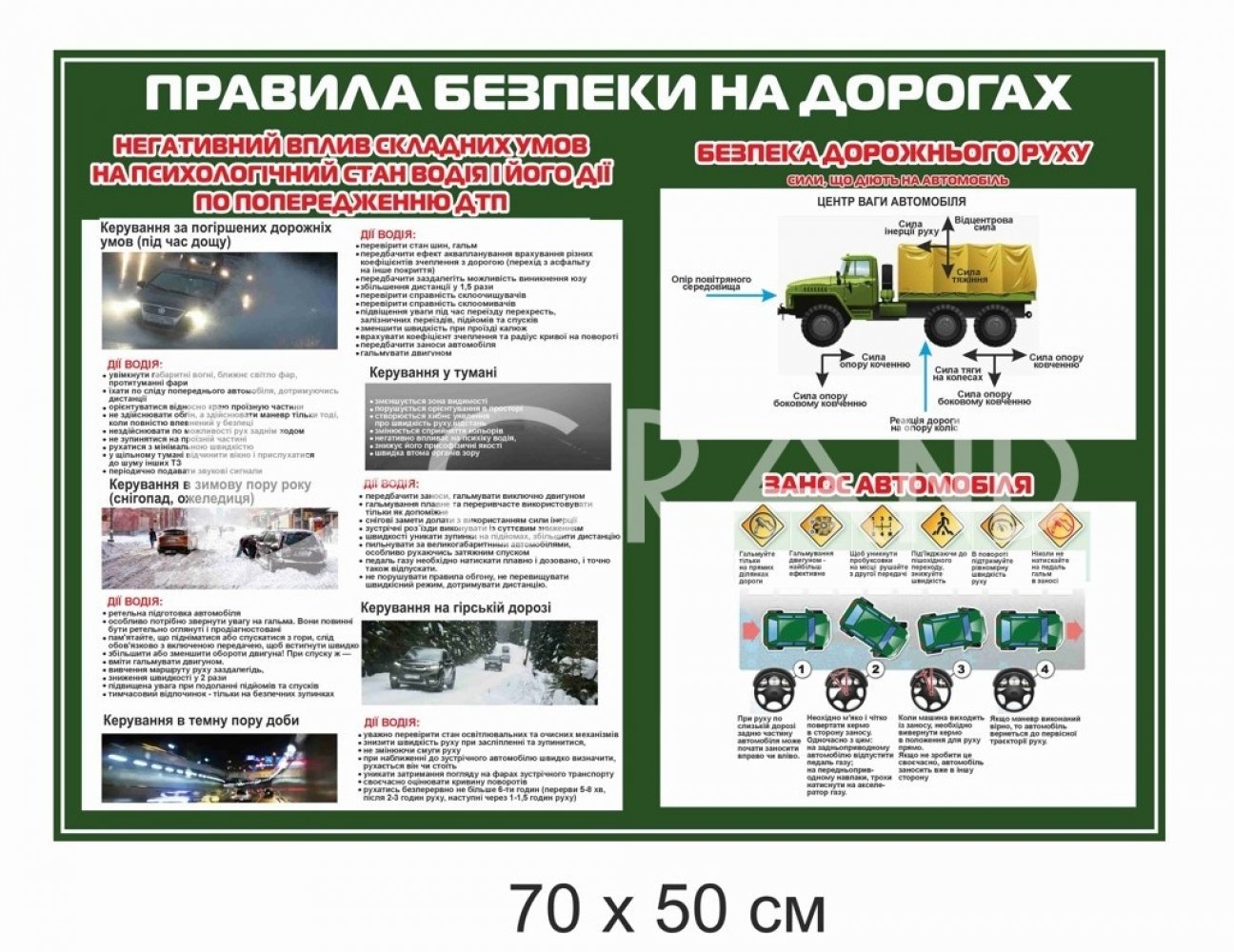 Безпека дорожнього руху вимагає від водіїв постійного вдосконалення навичок та знання правил керування в екстремальних умовах. Стенд "Правила безпеки на дорогах" від D-GRAND — це комплексний навчальний посібник, що охоплює найбільш складні ситуації на дорозі.