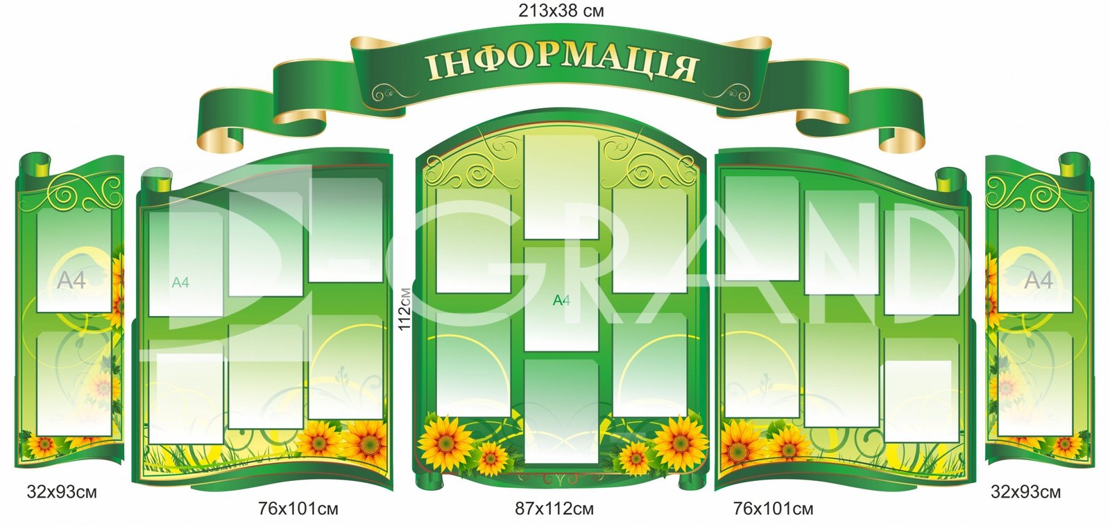- Стенди покриваються плівкою з повнокольоровим друком.